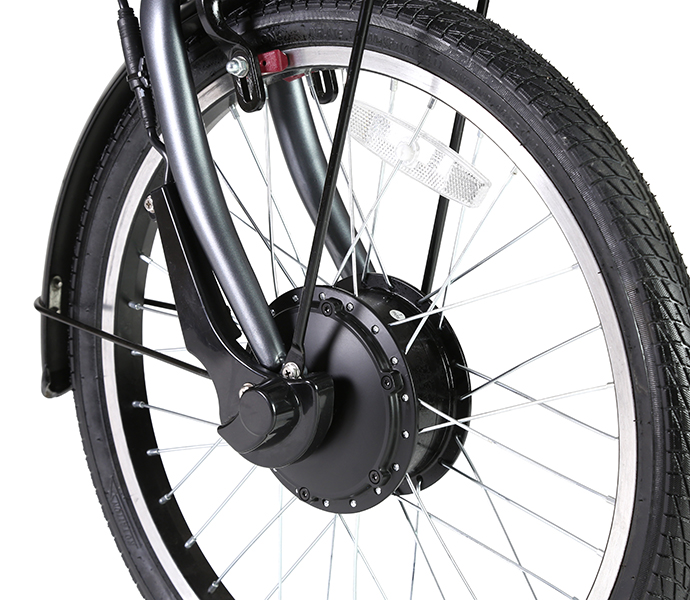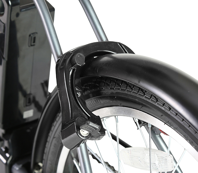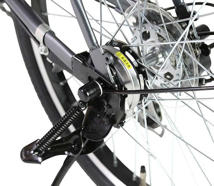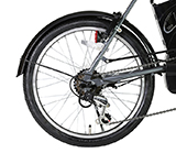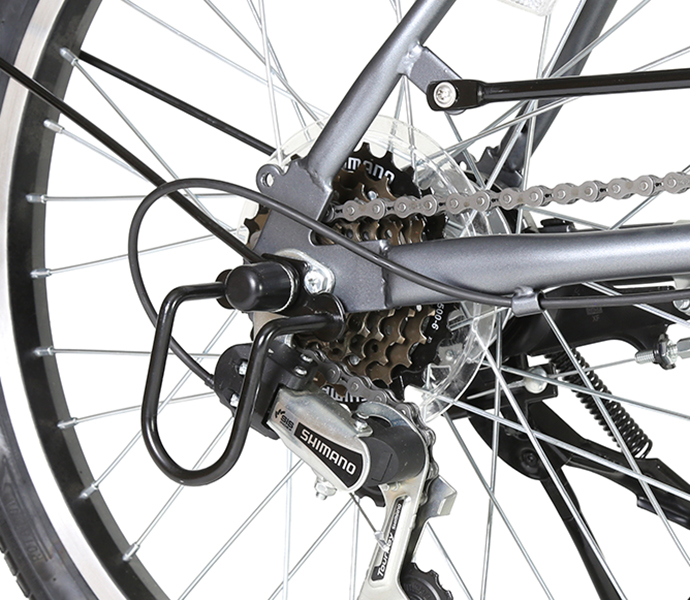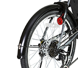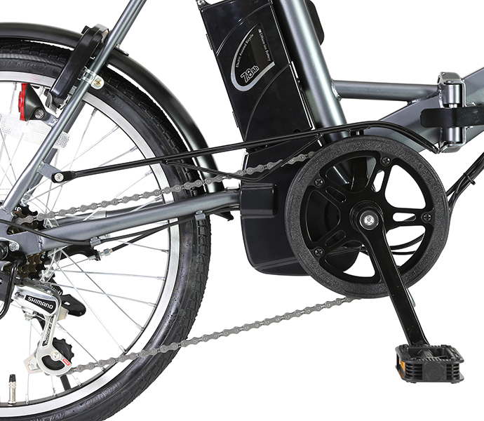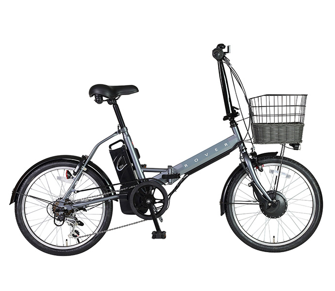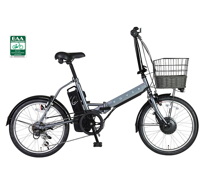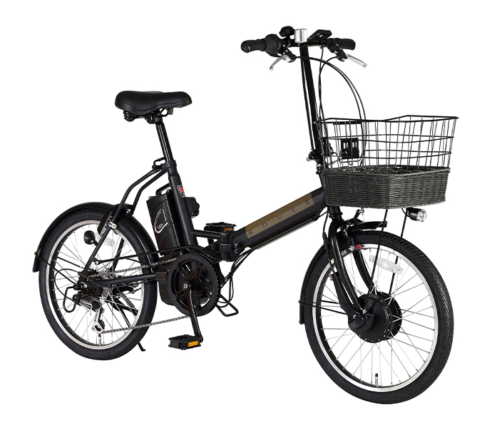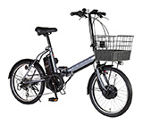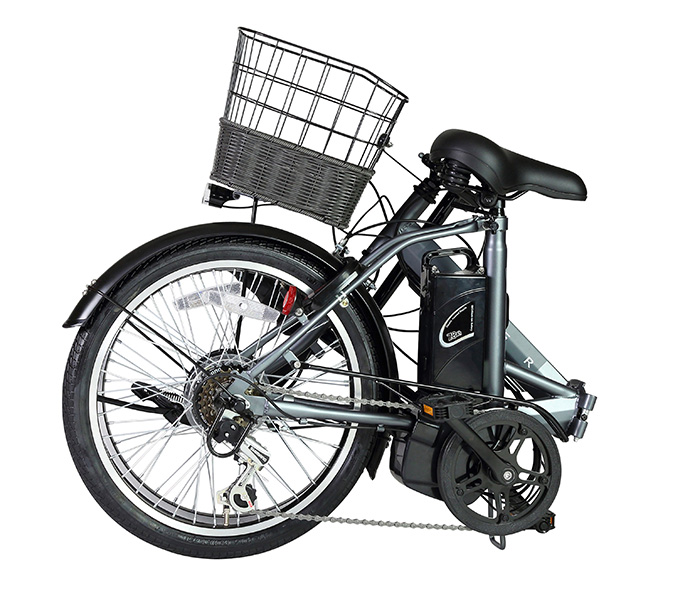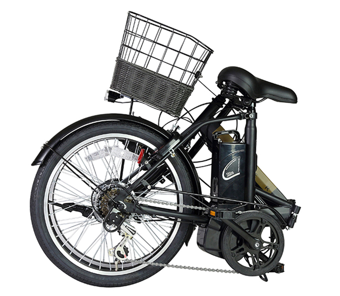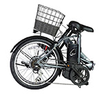 折りたたみ、20インチ、6段変速、走行距離 約50km、フロントバスケット、前後フェンダー、ローラーブレーキ搭載