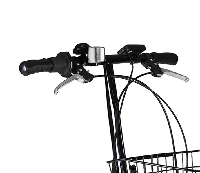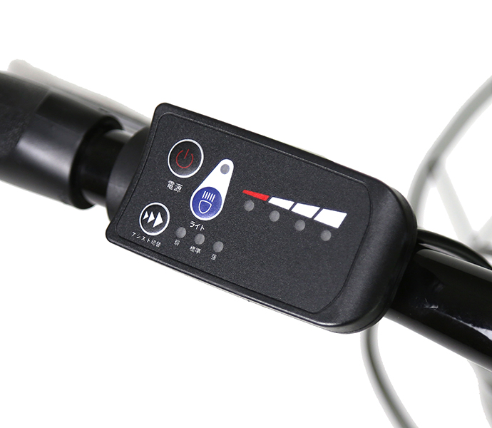 カゴ・ライト・鍵がついたオールインワンモデル! 大容量バッテリーで最大約50kmの走行が可能。