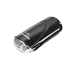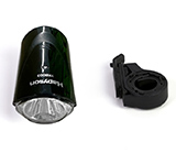 ハンドルバーに簡単に取り付けできる、単3乾電池(3本)使用のワイドパワーLEDライト。