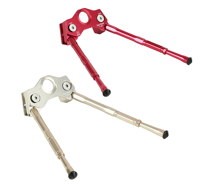長さが調節でき、様々な自転車に取付け可能。チタン軸採用で強度も抜群!